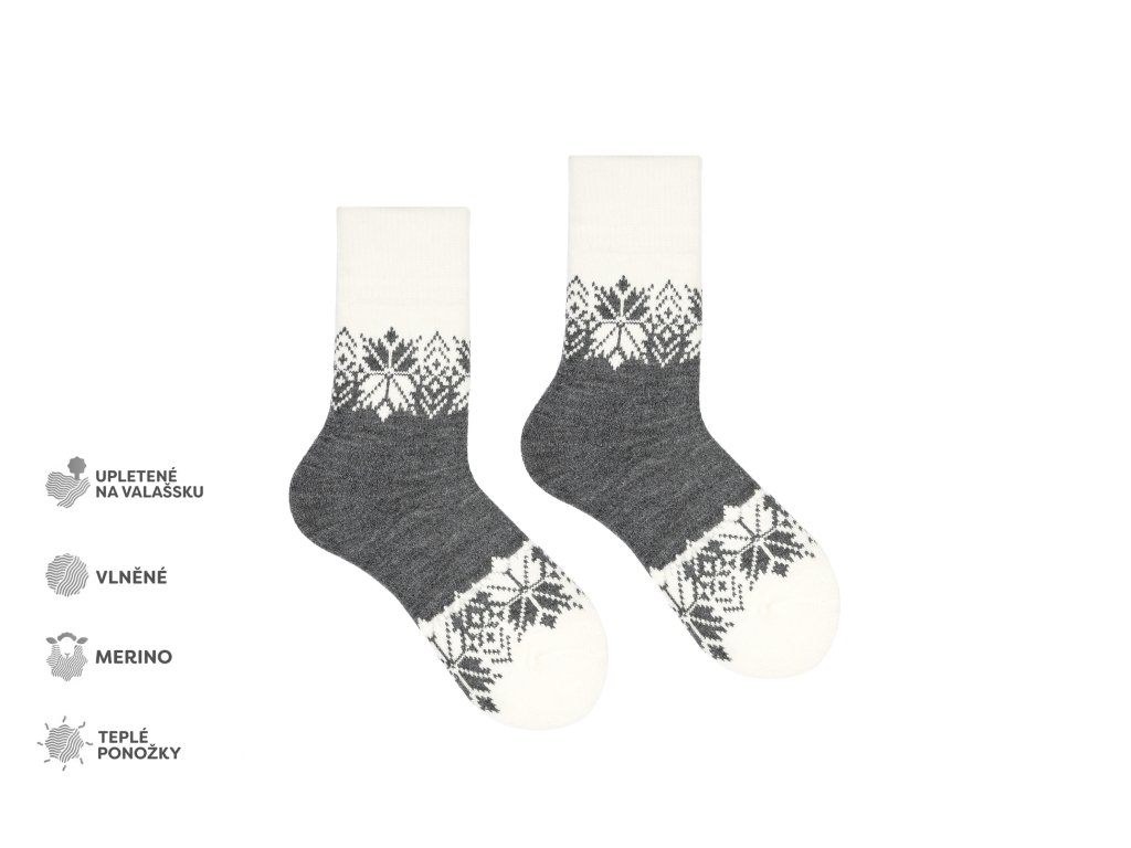 Ponožky jsou vyrobeny z přírodní ovčí vlny merino ve směsi s jinými termovlákny, které zabraňují žmolkování, plstnatosti a zvyšují tepelné vlastnosti.